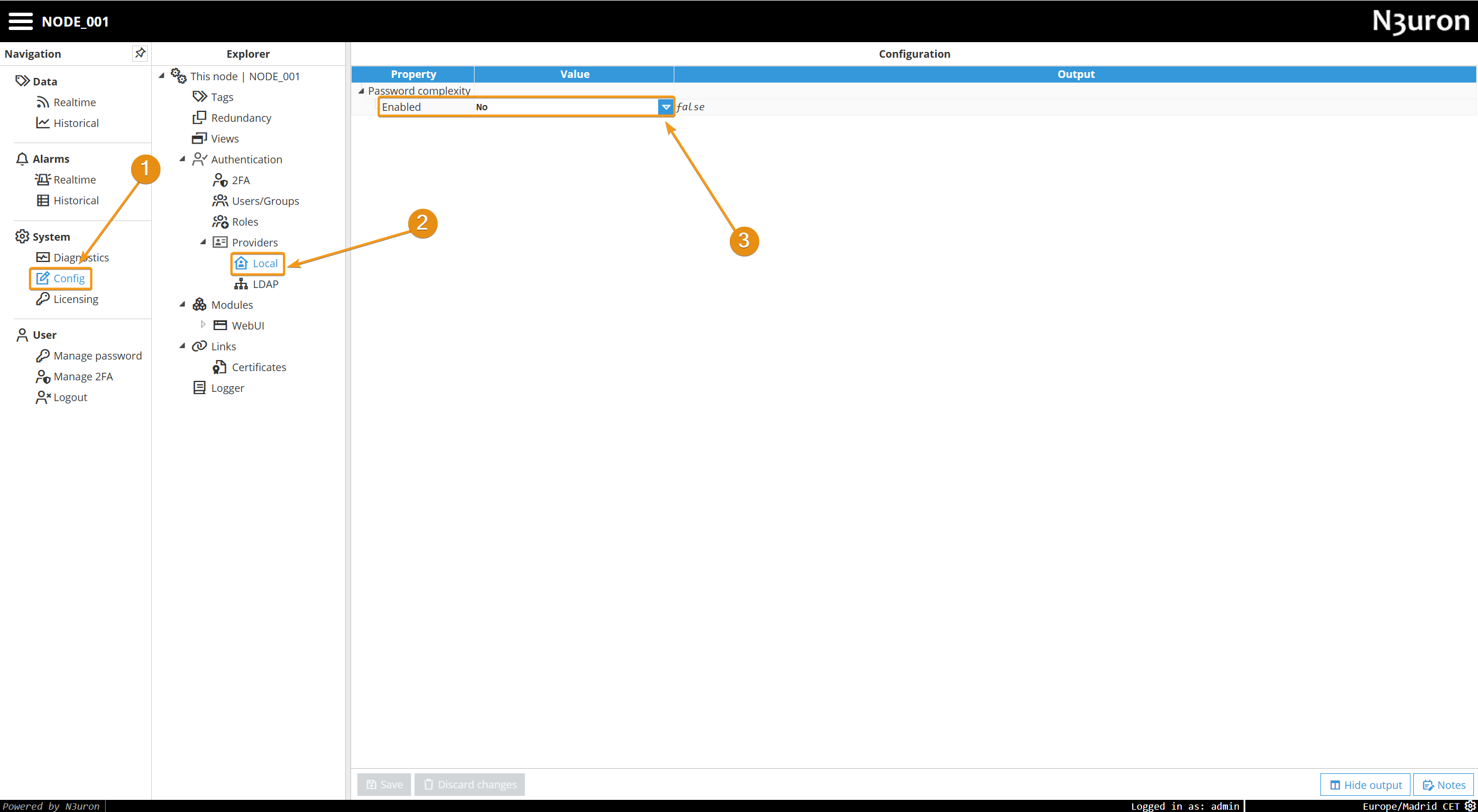 • Create a unique N3uron user for each operator accessing the node.
