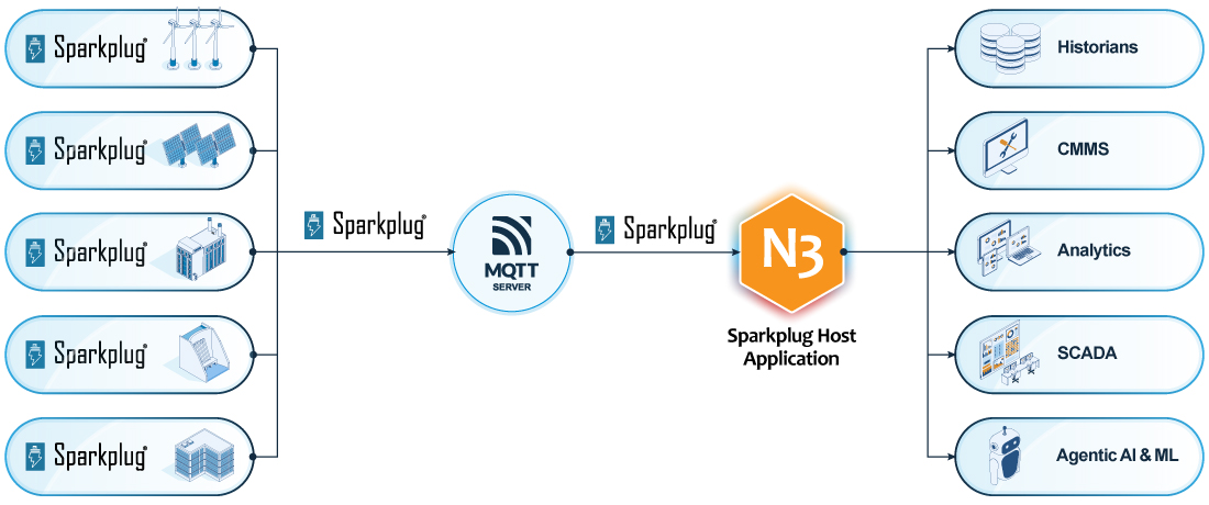 The Sparkplug Host Application module enables the N3uron IIoT Platform to operate as a host application in an MQTT Sparkplug network, allowing it to seamlessly consume, manage, and contextualize real-time data from Edge of Network (EoN) nodes and devices.
