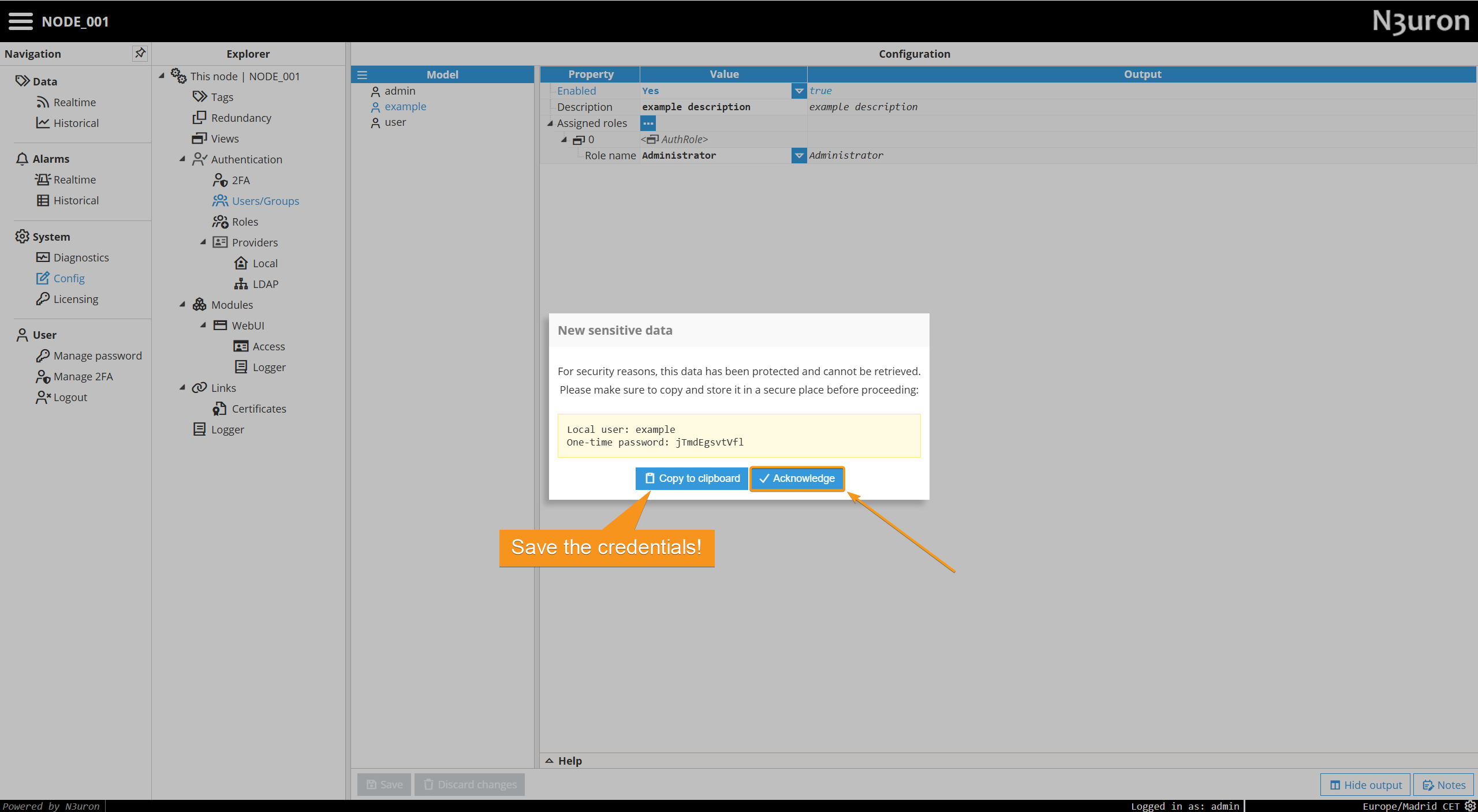 Step 4: Proceed to save the changes. You will then be prompted with the initial one-time password for the user. Then click on Acknowledge.